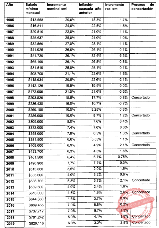 ** El proceso de negociación tripartito inició con el salario mínimo de 1997, amparado en la Ley 278 de 1996.